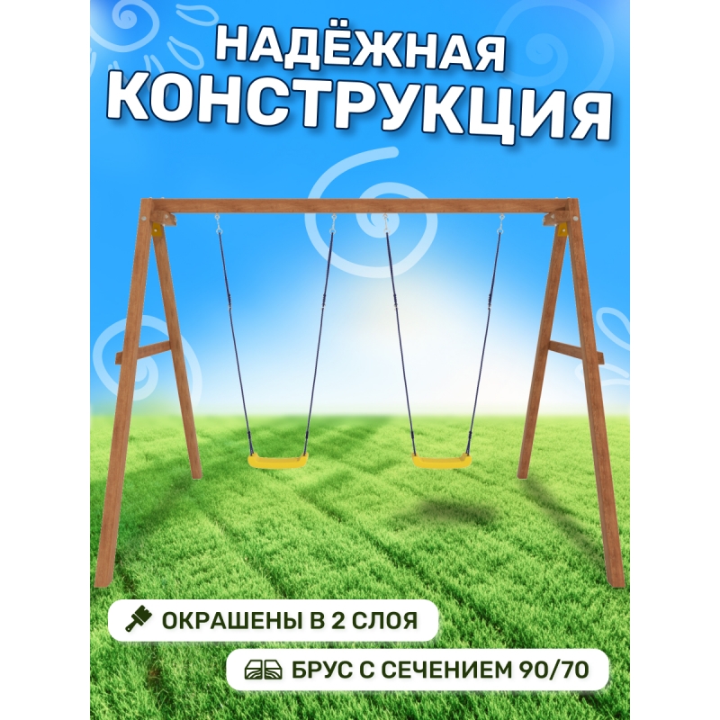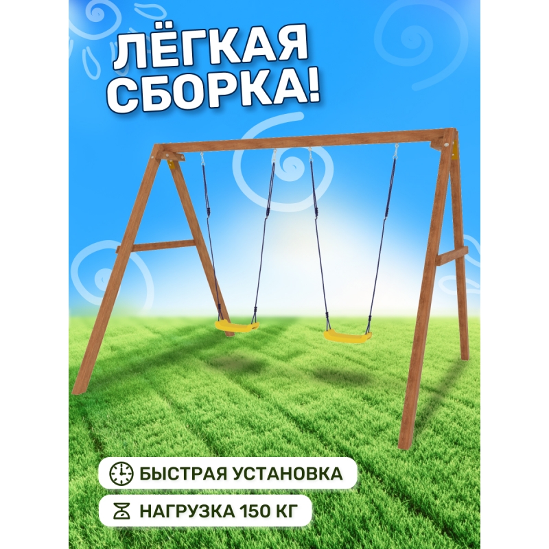 Благодаря натуральным материалам и надежной конструкции, эти качели обеспечивают безопасное и комфортное времяпрепровождение для детей в любой открытой зоне. Идеально подходят для установки на даче, во дворе частного дома или в любом другом просторном месте, создавая уютную и веселую атмосферу для малышей.
