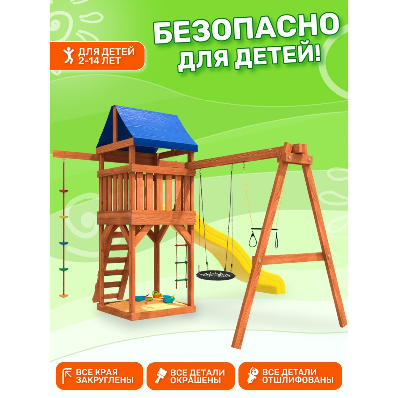 - большая площадь игровой башни для комфортного и безопасного размещения на площадке нескольких детей.