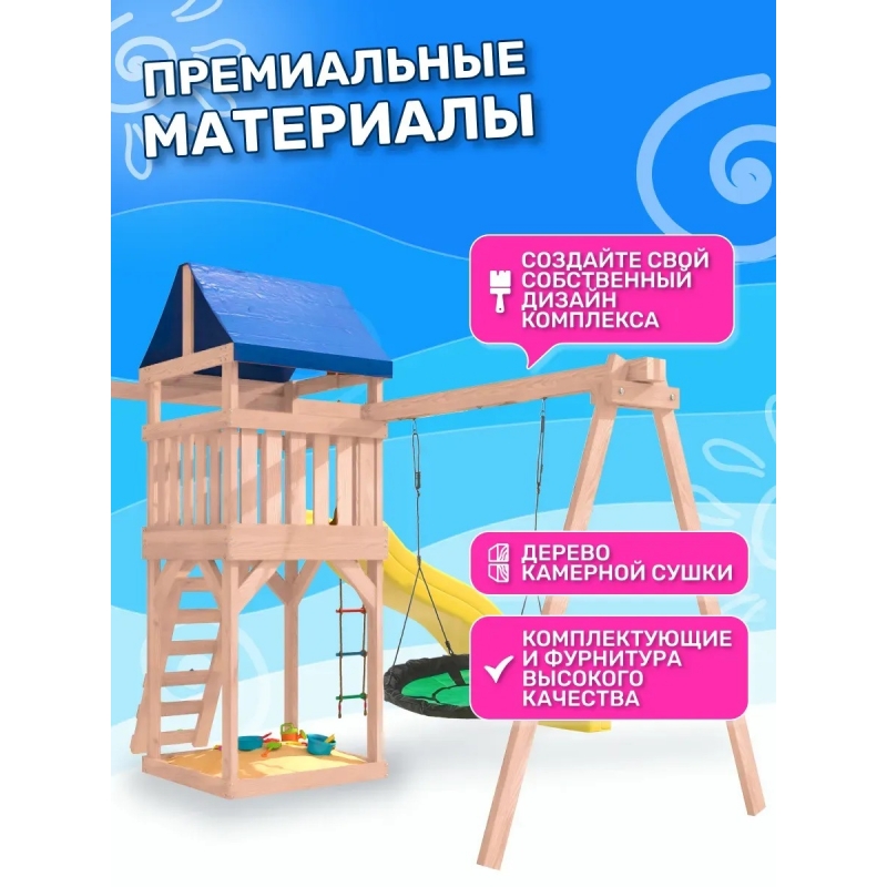 Площадка способствует развитию физических навыков, координации, логического мышления и укреплению иммунитета. Также в комплект входят садовые подвесные качели для всей семьи — они выдерживают до 250 кг и идеально подходят как для детей, так и для взрослых. Создайте безопасное и увлекательное пространство для игр и отдыха на вашем участке!