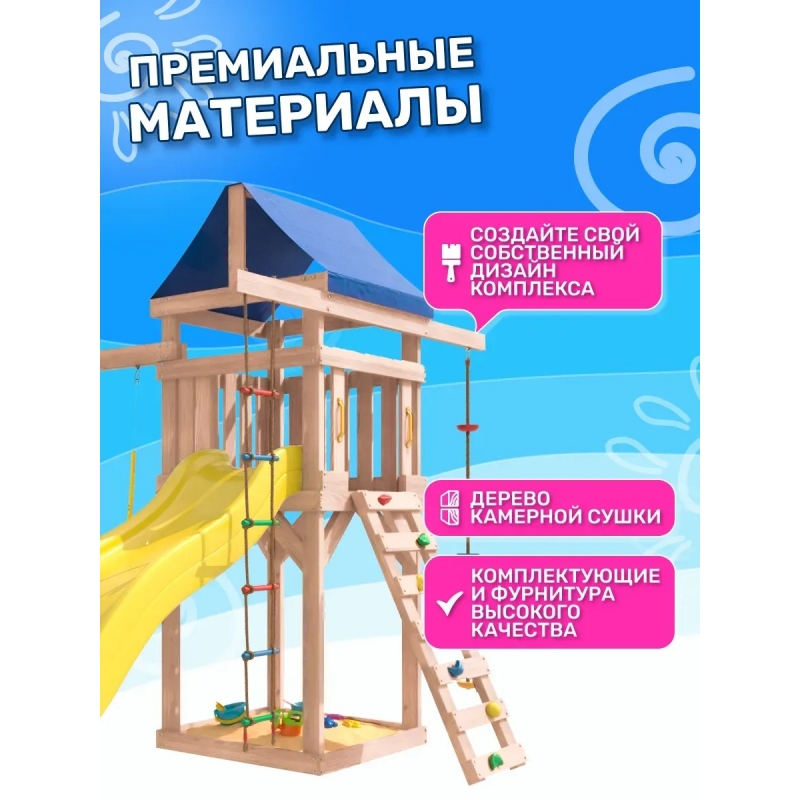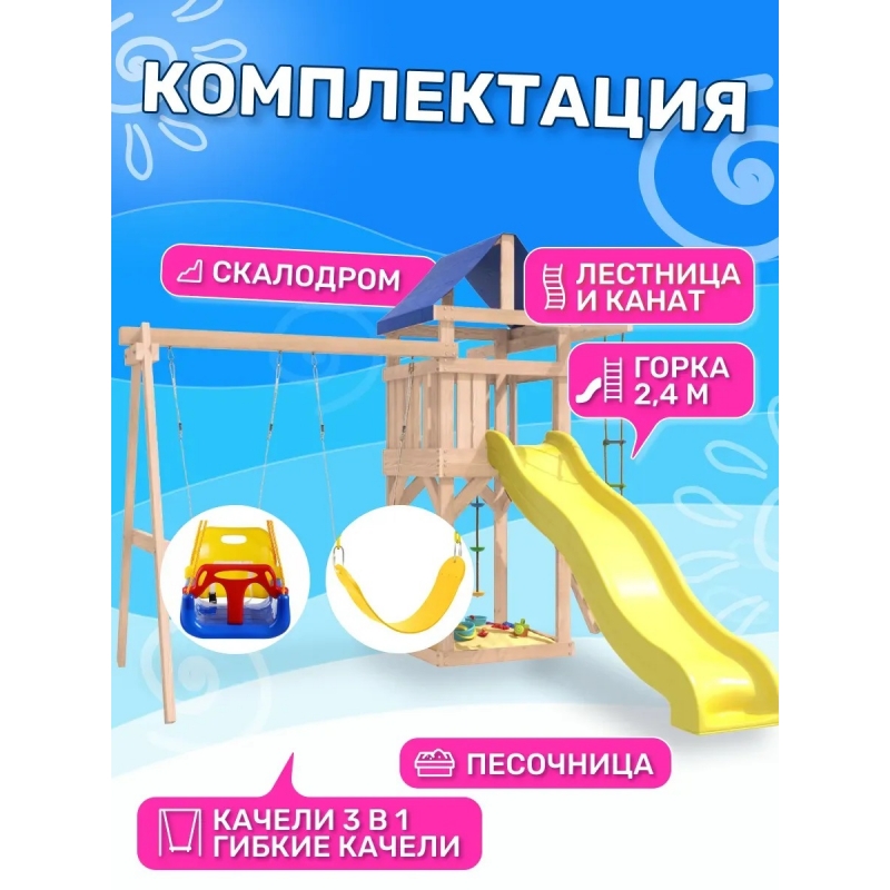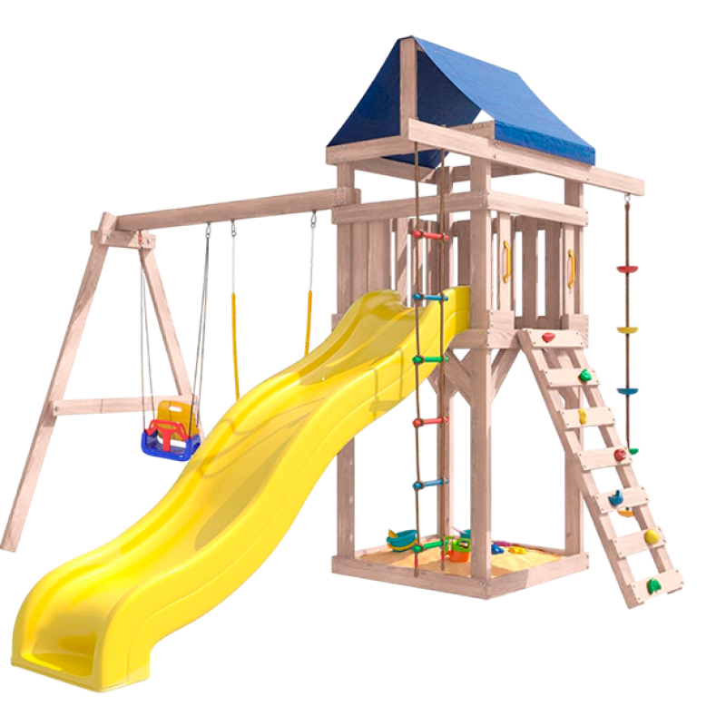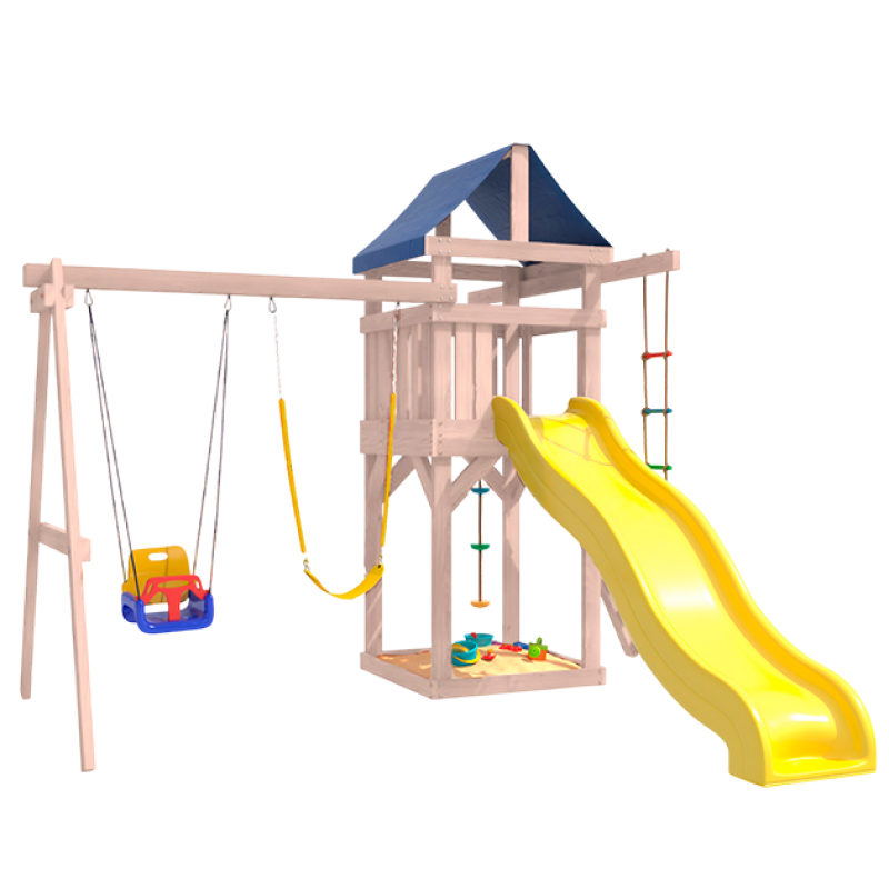 Площадка неокрашенная с качелями 3 в 1 и гибкими качелями