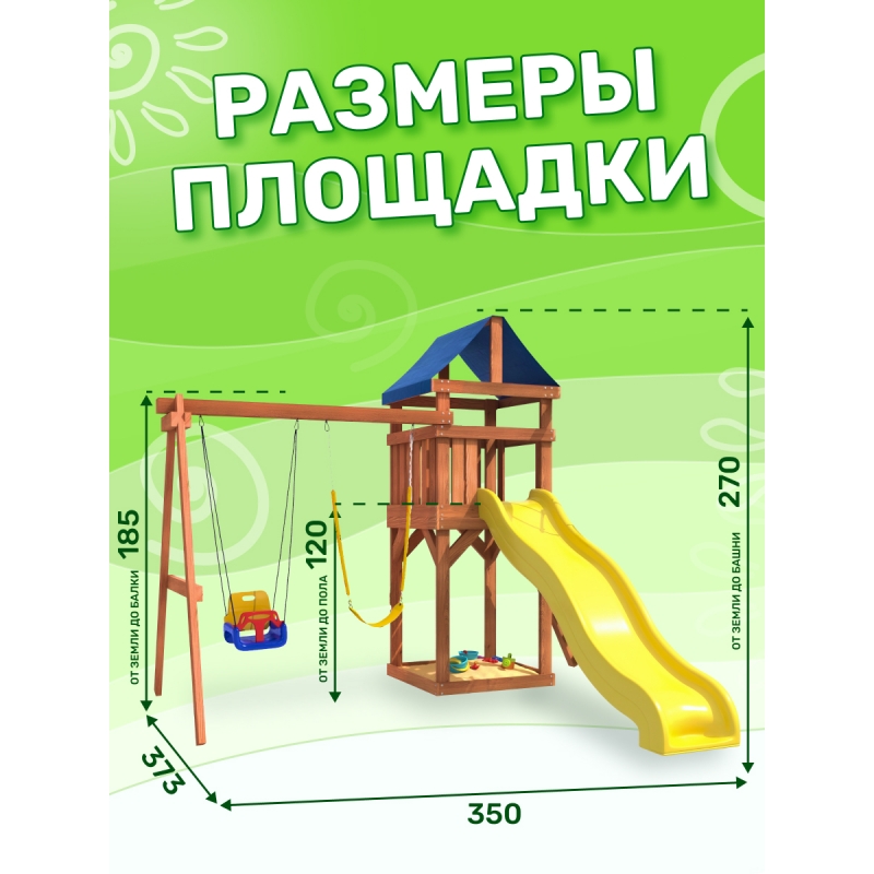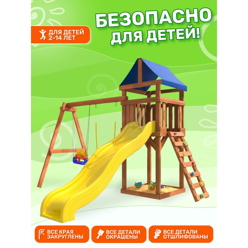 - большая площадь игровой башни для комфортного и безопасного размещения на площадке нескольких детей.
