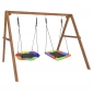 Детские игровые качели National Tree Company отлично подходят для использования на даче и во дворе частного дома, способствуют развитию координации и балансировки у детей. Такие уличные качели – это не только развлечение, но и возможность для детей развивать социальные навыки. Игры на качелях способны объединять детей, способствуя взаимодействию и коммуникации во время веселых совместных развлечений. Качели, выполненные из качественного дерева, легко вписываются в любой ландшафт и могут стать отличным дополнением к садовому дизайну. Естественные материалы устойчивы к воздействию внешней среды, что обеспечивает долгий срок службы. Все карабины и кронштейны в комплекте помогают создать надежную конструкцию. Благодаря этому, качели отличаются высокой безопасностью для малышей с разным весом. В конечном итоге, детские игровые качели – это не просто предмет для игры, а важный элемент, способствующий всестороннему развитию ребенка и укреплению семейных связей Комплектация и размеры В комплект входят: деревянный каркас, качели гнездо Гексагон - 1 шт, качели гнездо лодка - 1 шт, карабины и кронштейны. Размеры качелей составляют 2900*2700*2200 мм, а вес - 54 кг. Установка и размещение Деревянные уличные качели устанавливается в землю и не требует бетонирования. Размещается на улице, подходит для детей от 3 до 14 лет.