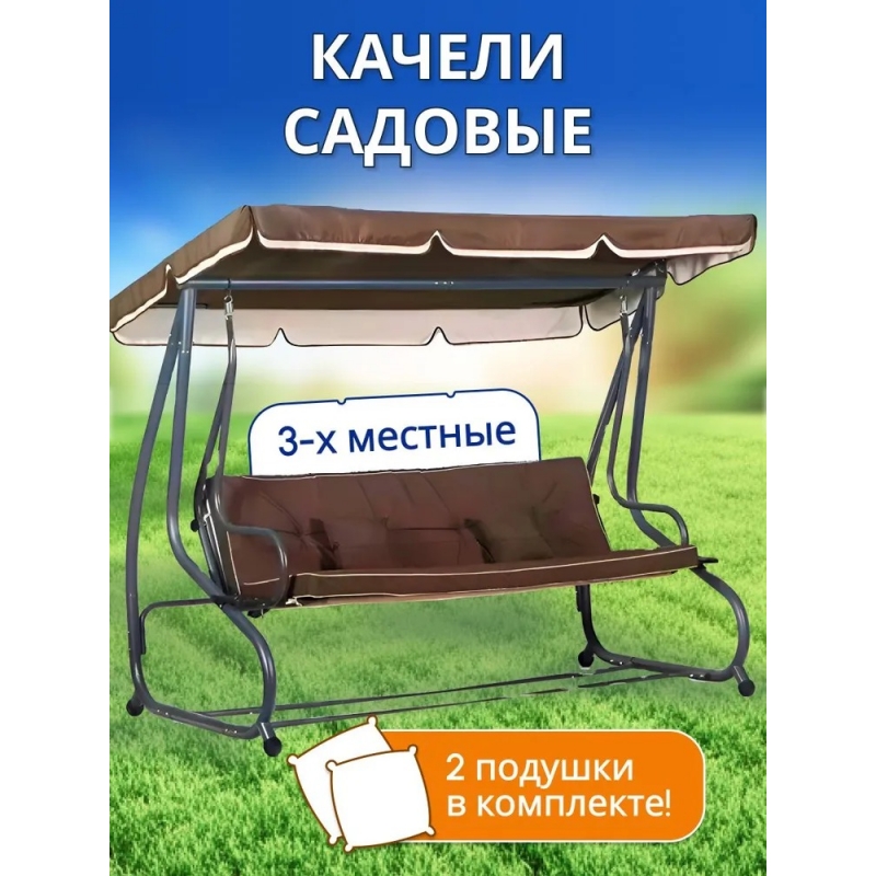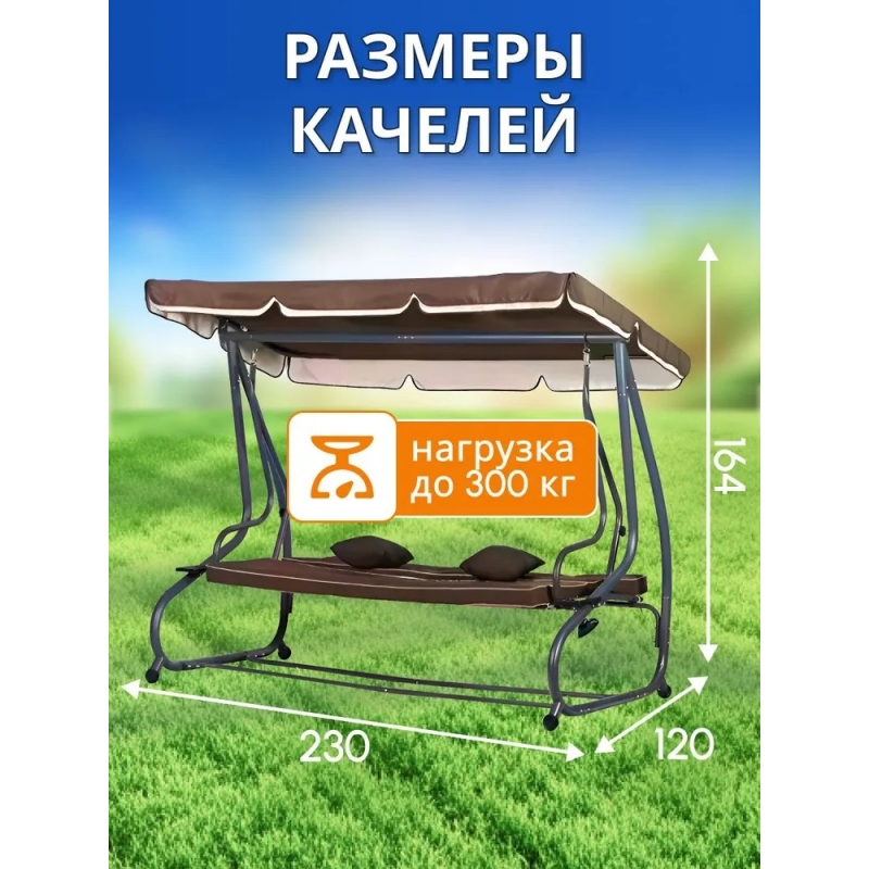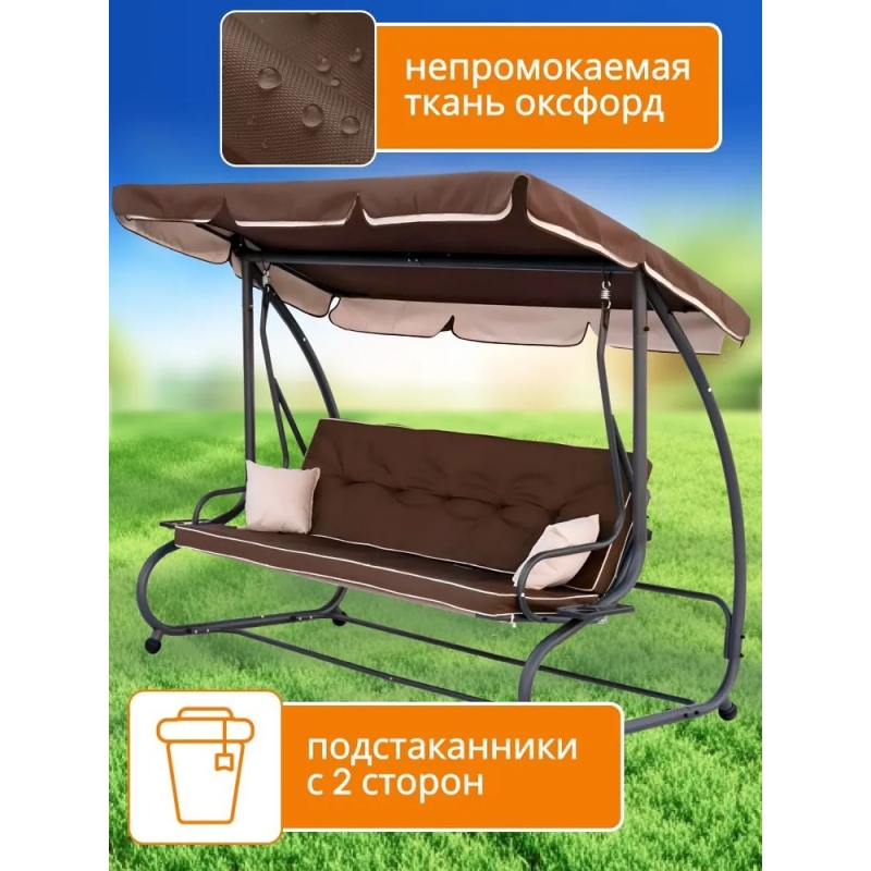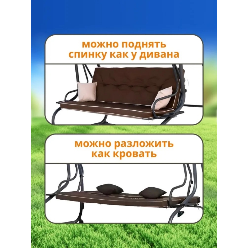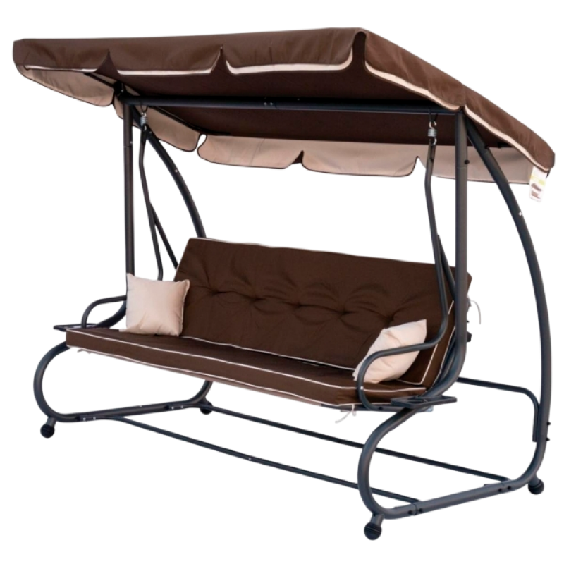 Качели садовые подвесные Lux с тентом и подушками коричневые