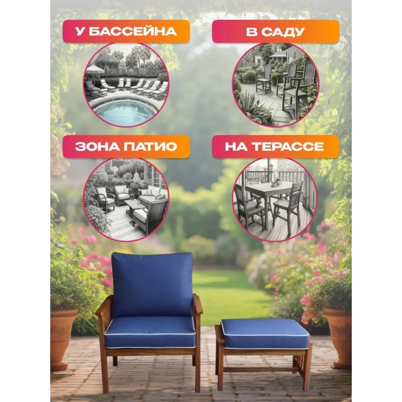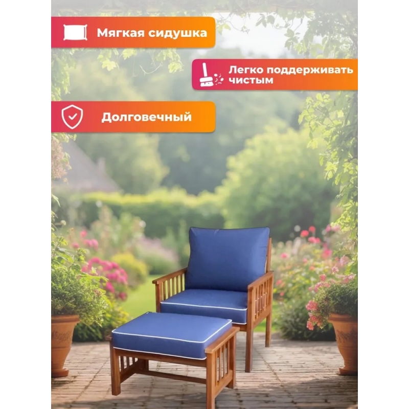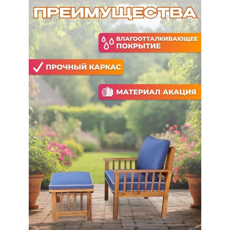 - Высокое качество материалов — каркас из акации обеспечивает прочность и экологичность, а текстильные сиденья с поролоновым наполнением создают комфорт.