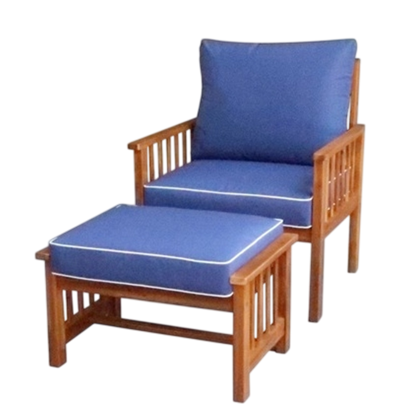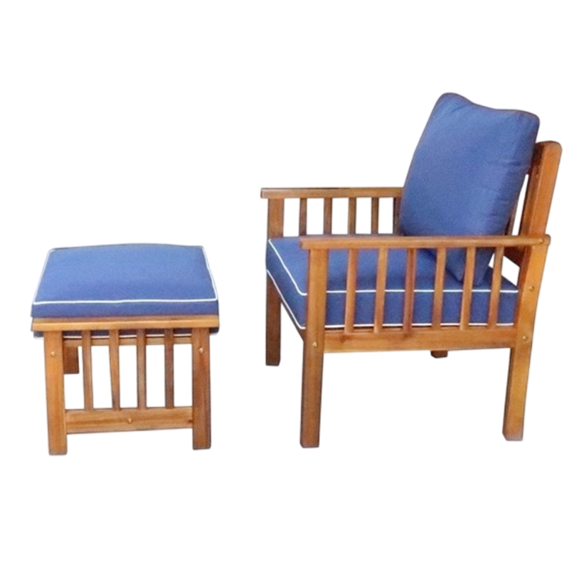 В комплект входит удобное кресло с подлокотниками и мягкой сидушкой, а также компактный пуф — оба предмета оснащены мягкими текстильными сиденьями с поролоновым наполнением для максимального комфорта. Благодаря влагостойкому покрытию каркаса, мебель устойчива к воздействию влаги и погодных условий, что делает ее долговечной и практичной.
