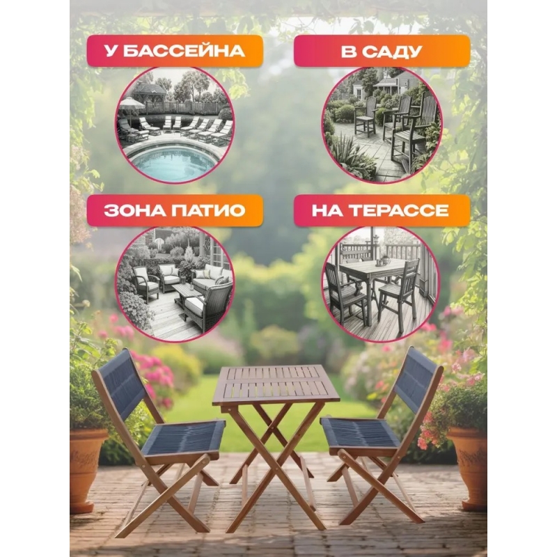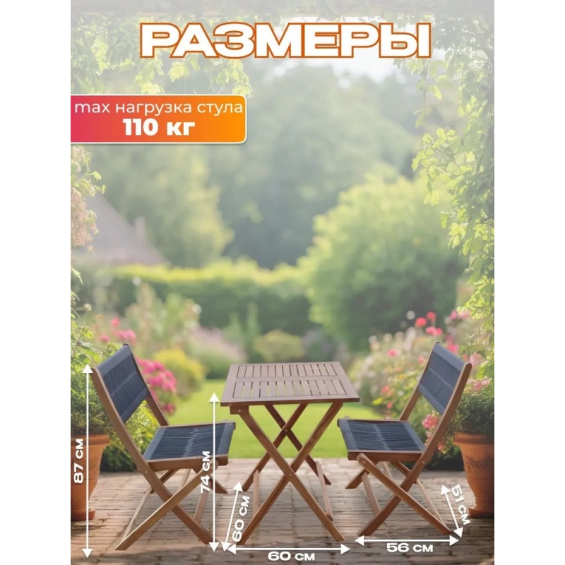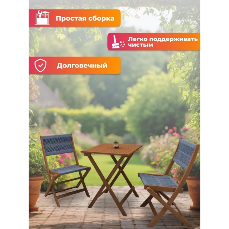 - Практичность и удобство — компактный набор с двумя стульями и столом идеально подходит для небольших пространств, создавая функциональный и гармоничный ансамбль.