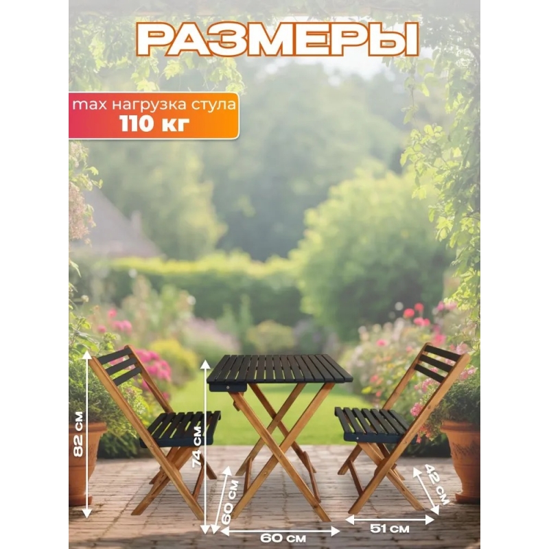 - Практичность и удобство — компактный набор с двумя стульями и столом идеально подходит для небольших пространств, создавая функциональный и гармоничный ансамбль.