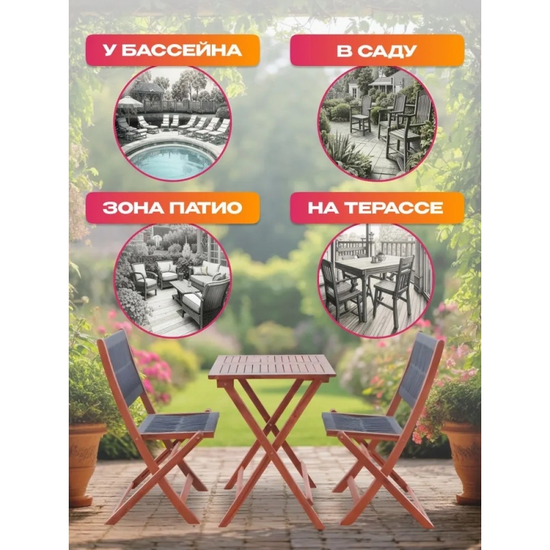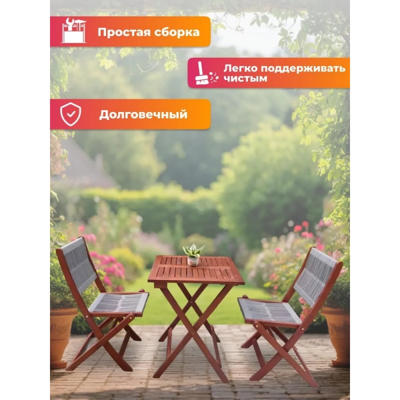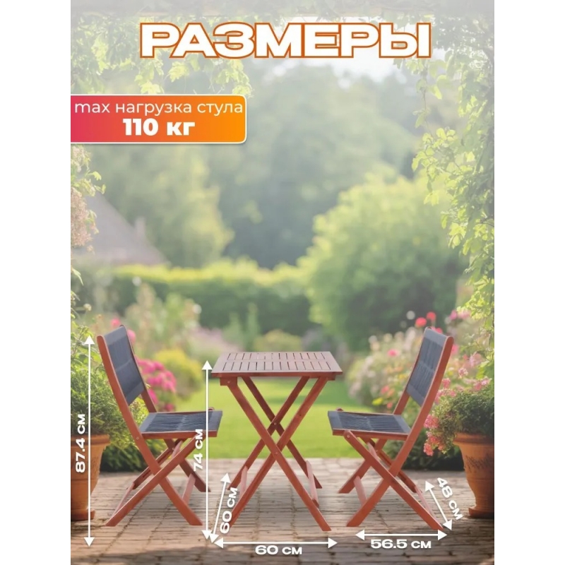 - Практичность и удобство — компактный набор с двумя стульями и столом идеально подходит для небольших пространств, создавая функциональный и гармоничный ансамбль.